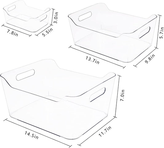 Set of 11 Transparent Plastic Refrigerator Organizer Bins with Handles - Pantry, Freezer, Cabinet Organization