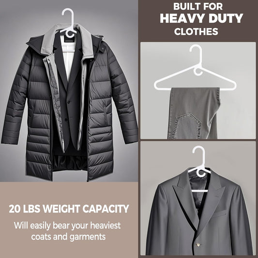Quality White Plastic Hangers 30 Pack - Super Heavy Duty Multipack for Clothes - Thick Strong Standard Closet Clothing Hangers with Hook for Scarves and Belts-17 for Coats (White, 30)