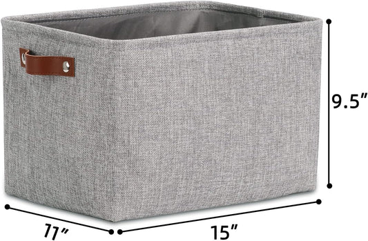 Fabric Storage Basket for Shelves/Closets, Collapsible Rectangle Basket for Organizing Clothes, Toys, Towels, Books, Laundry, Nursery, Dog Toy Basket Empty (Gray)