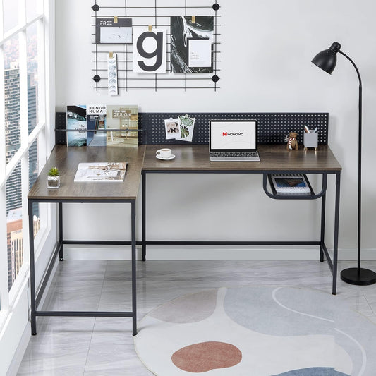 L Shaped Desk 65 Inch No Screw Quick Lock Computer Desk with Storage Basket Gaming Corner Writing Workstation Table with Shelf for Home Office Easy to Assemble, Walnut